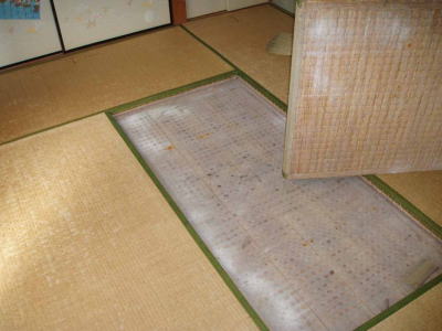 作業としてはこの痛んだ畳を一枚ずつ持ち上げて、一度畳屋さんの工場に持ち帰ります。